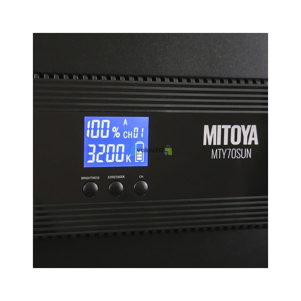 MITOYA SUN70 Soft LED Ultra Slim je pokročilá lampa s konštantným svetlom s nastaviteľným výkonom a teplotou farby od 3200 do 5600 K. Okrúhly panel pozostáva z 360 LED diód, z ktorých polovica vyžaruje teplé svetlo a druhá polovica vyžaruje studené svetlo (neutrálna biela). Výkon svetla sa nastavuje v krokoch po 1 % a teplota farby v krokoch po 100 K, vďaka čomu je výber najpriaznivejších prevádzkových parametrov efektívny a presný. Lampa verne reprodukuje farby - jej koeficient CRI je 95+ .