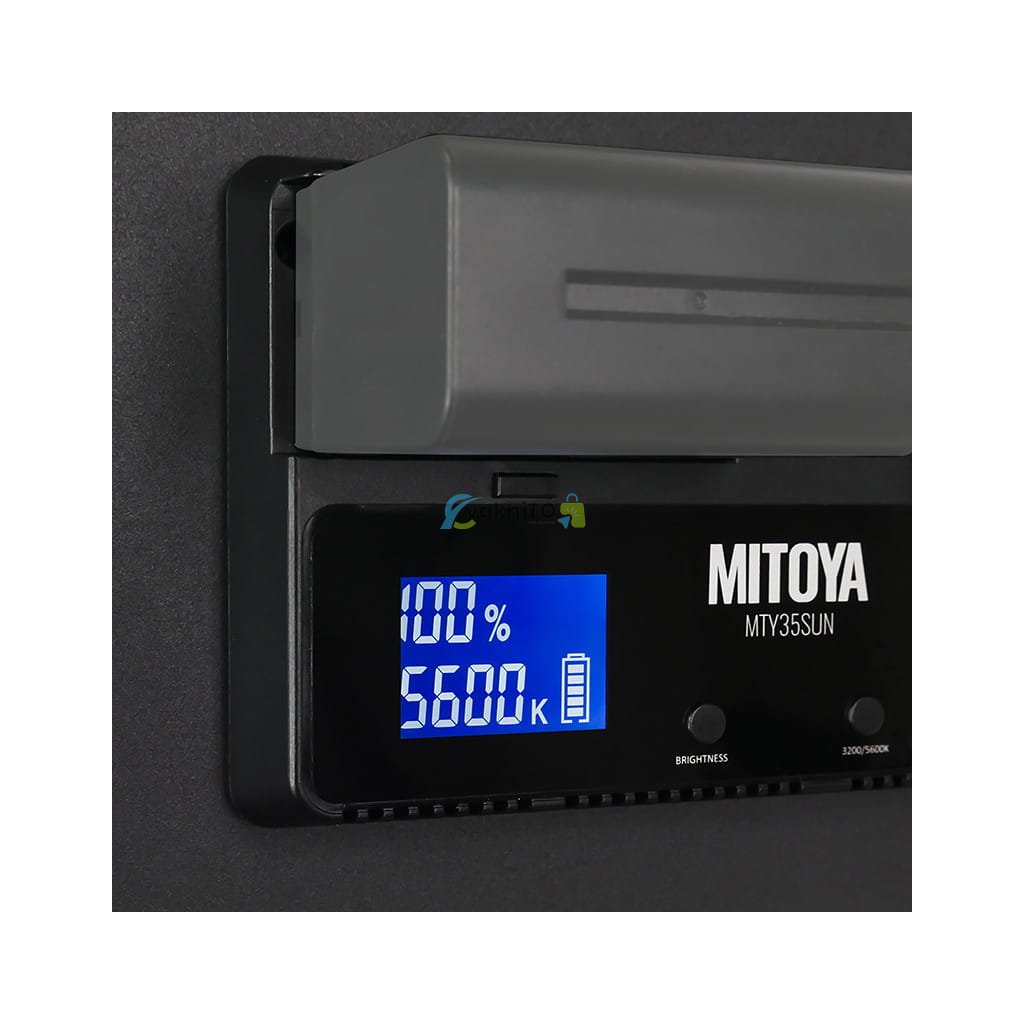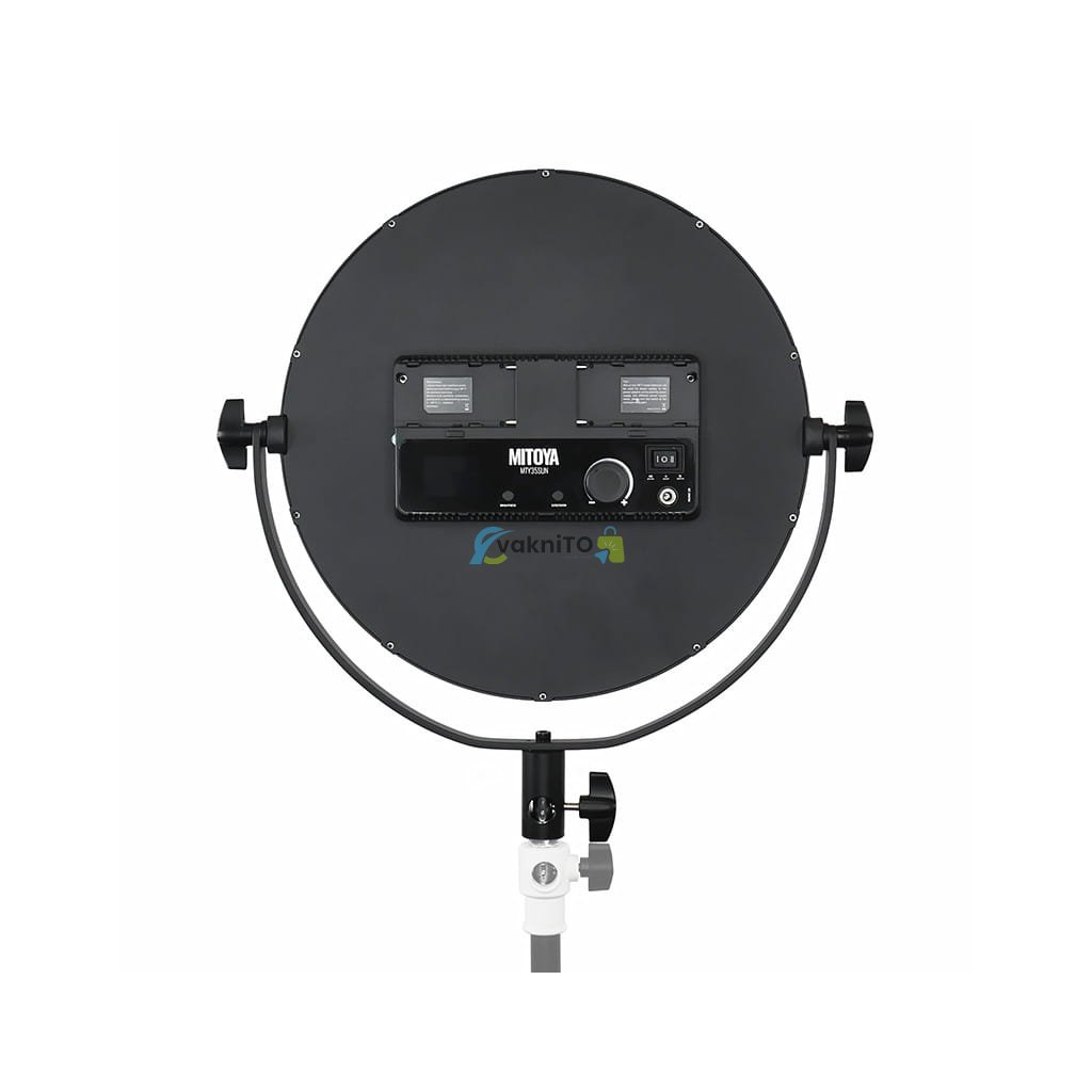 MITOYA SUN35 je funkčné svietidlo s nastaviteľným výkonom a teplotou farby od 3200 do 5600 K. Okrúhly panel pozostáva z 272 LED diód, z ktorých polovica vyžaruje teplé svetlo a druhá polovica vyžaruje studené svetlo (neutrálna biela). Teplota farby sa upravuje každých 100 K a výkon svetla každé 1 %, takže môžeme ľahko určiť najpriaznivejšie prevádzkové parametre. Lampa verne reprodukuje farby - jej koeficient CRI je 95+ .