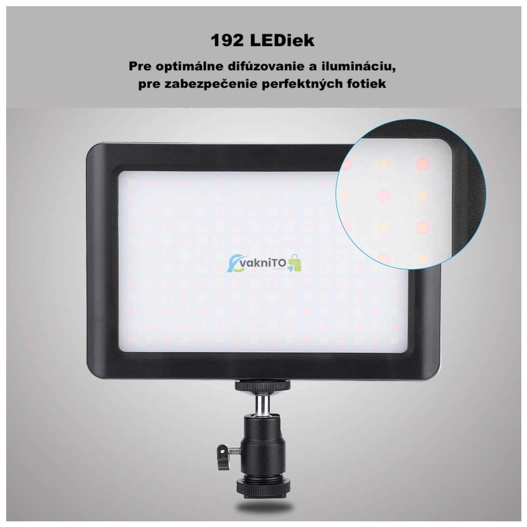 Toto LED svetlo je profesionálne zariadenie, ktoré umožňuje jednotné a komplexné osvetlenie počas natáčania. Svetlo je vybavené 192 LED diódami s teplou a studenou farbou svetla. Je vhodné pri nahrávaní filmov, rovnako aj pre makrofotografiu a pre fotografovanie portrétov.