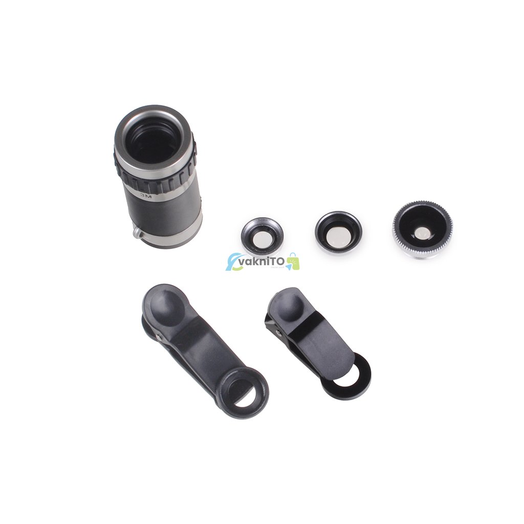 Sada 4 konvertorov pre smartfón: FISH EYE (rybie oko) + WIDE (širokouhlý) + MACRO + ZOOM 8x