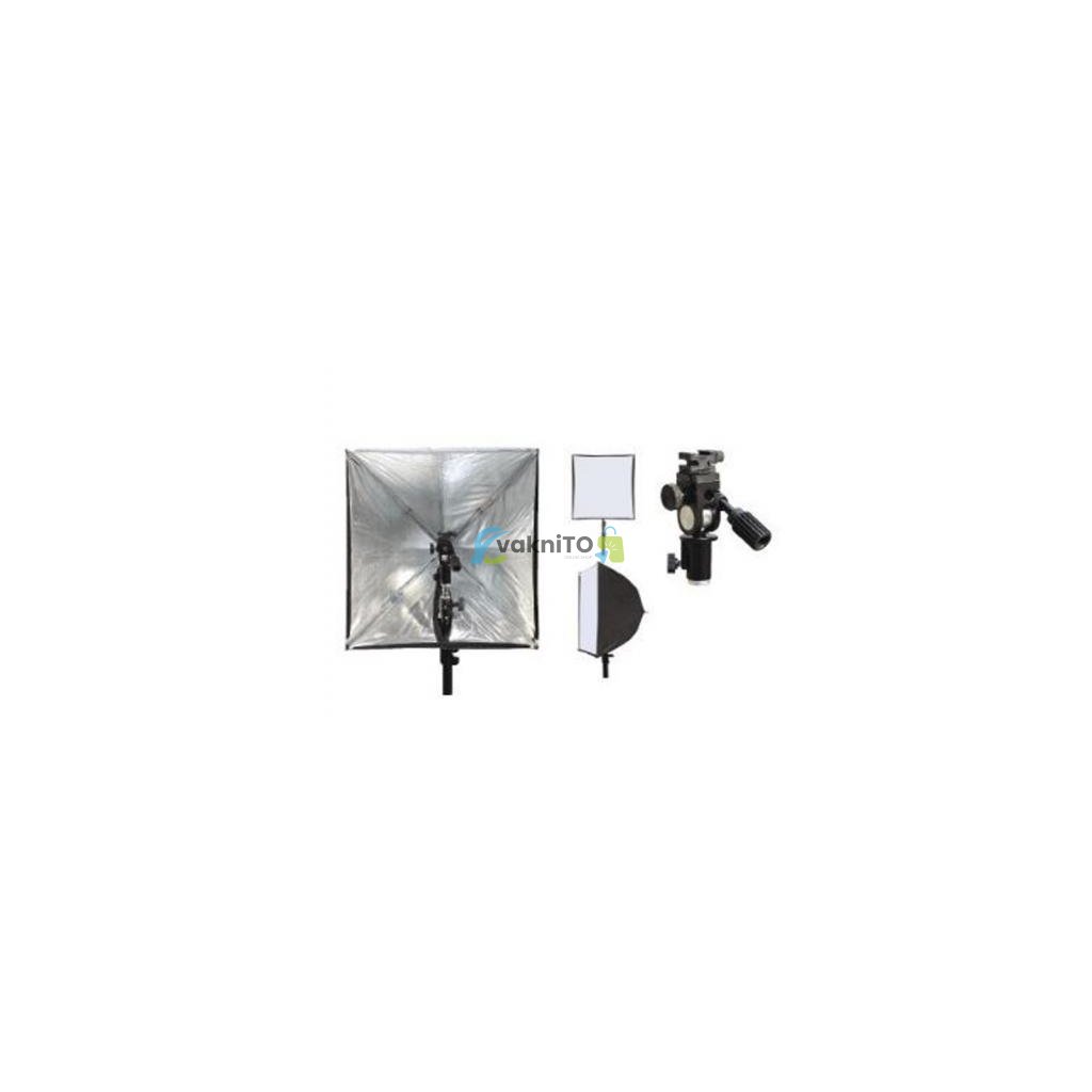 Toto je univerzálny softbox značky Bresser, ktorý je vhodný pre všetky štúdiové blesky. Softbox sa dá pripevniť na priloženú naklápaciu hlavu. Blesk je možné pripojiť k naklápacej hlave pomocou priloženého držiaka s "Hot Shoe".