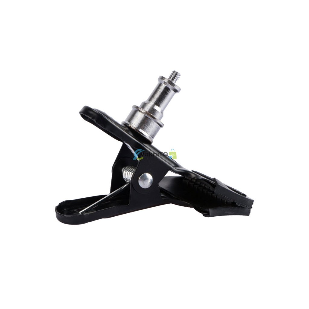 Robustná kovová štúdiová svorka s veľmi silnou pružinou na upínanie papierového pozadia, textílneho pozadia alebo rekvizít. Na konci svorky gumové kryty, ktoré zaisťujú maximálnu fixáciu. Vhodné aj pre fotostoly.