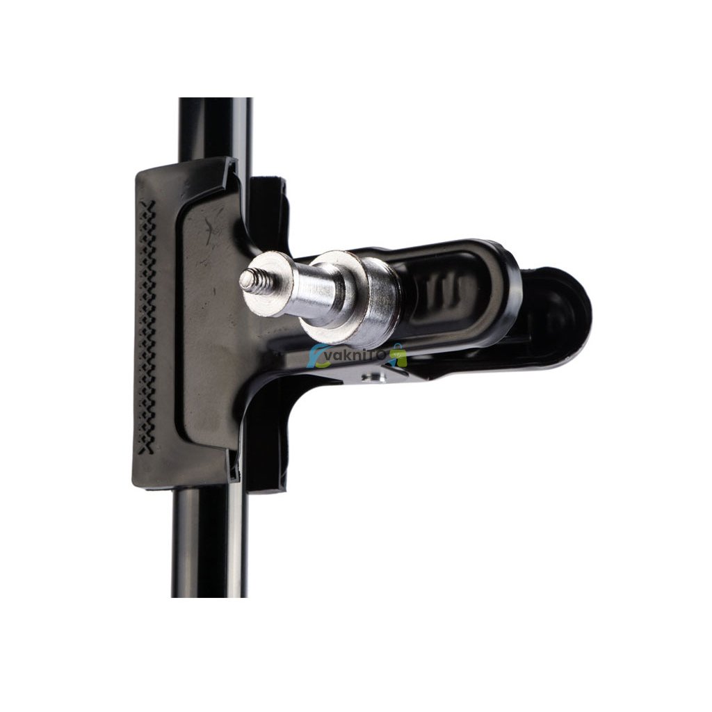 Robustná kovová štúdiová svorka s veľmi silnou pružinou na upínanie papierového pozadia, textílneho pozadia alebo rekvizít. Na konci svorky sú gumové kryty, ktoré zaisťujú maximálnu fixáciu. Vhodné aj pre fotostoly.